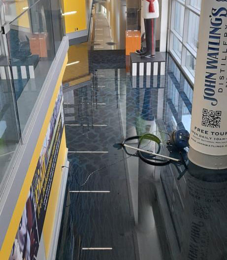 NASSAU, BAHAMAS -- Nassau Airport Development Company officials said that a failure in a fire suppression line led to flooding in the arrivals corridor near Bahamas Immigration.
