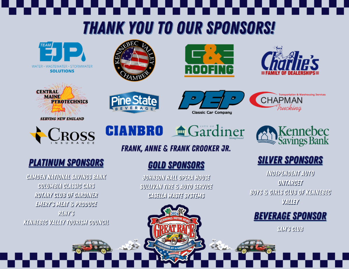 We want to extend our gratitude to everyone who made bringing the Great Race to Gardiner possible. Our volunteers worked extensively to answer questions and navigate cars and brought such a fun energy to the day. Thank you to Team EJP and Peter Prescott for playing such a pivotal role in bringing this amazing event to us, and thank you to our sponsors, as none of this would've been possible without your support! Below you can view a photo album from the day, taken by Kennebec Valley's very own Dave Dostie!