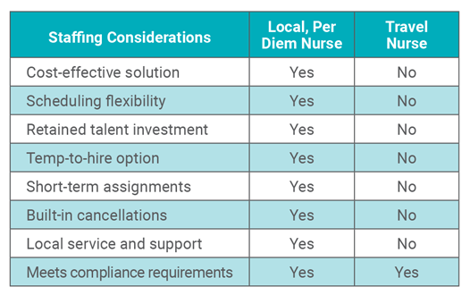 It is essential for hospitals to have the right nurse-to-patient ratio to ensure they can provide quality patient care. At Interim HealthCare® Staffing, we understand the struggle: long-term commitments, inflexibility and steep costs tied to travel nurses make it an unsustainable solution. What if you could select from a pool of local, per diem nurses that comply with your staffing requirements without these drawbacks? You can. |