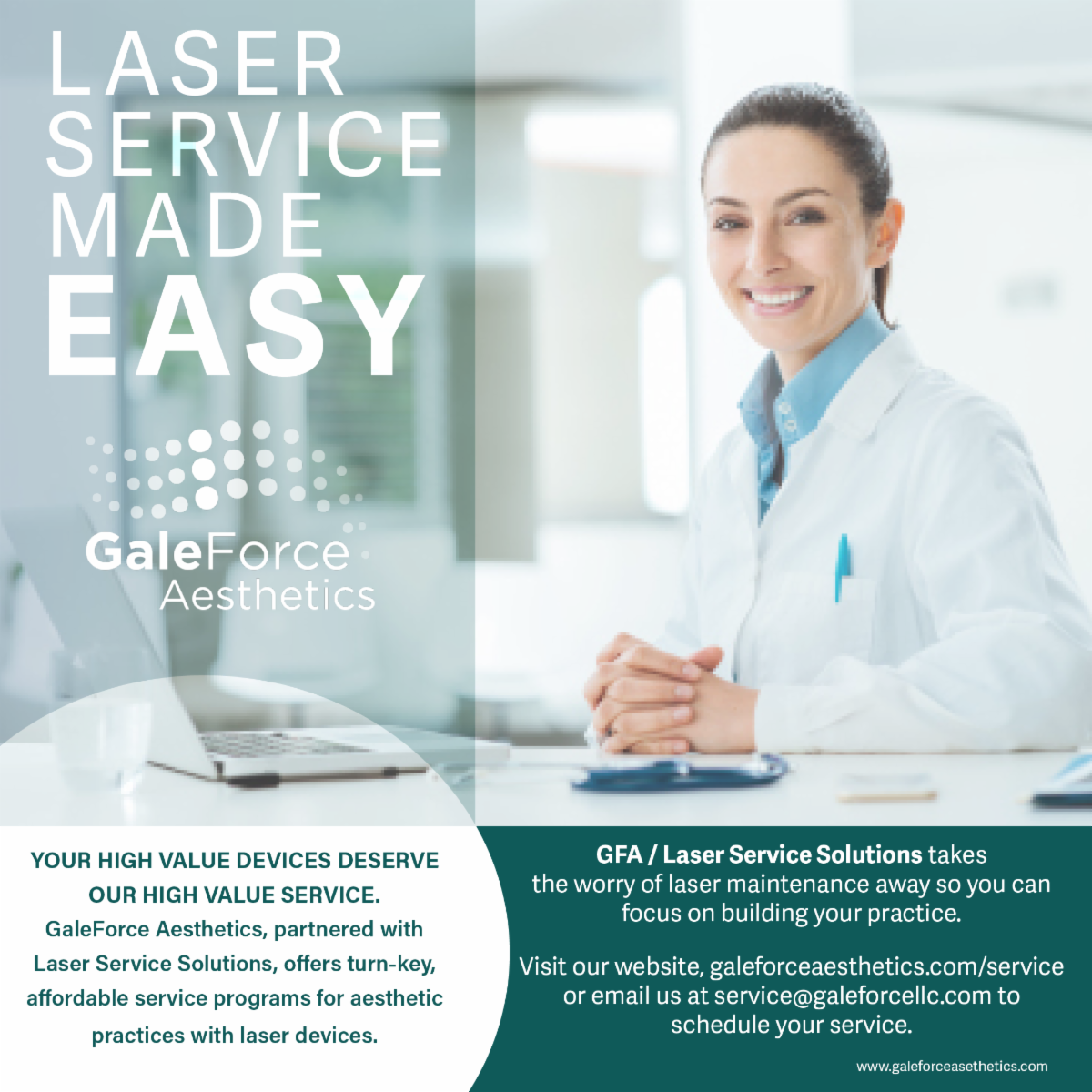 Laser Service Don’t let the risk of ongoing laser maintenance costs prevent you from re-investing in your practice. A service warranty through GaleForce Service can save you money and reduce downtime.