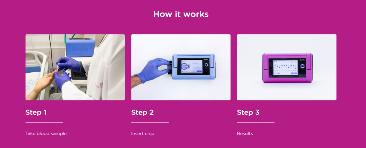 With the RevDx, CBC results are given on the spot, allowing physicians to make immediate decisions based on clinical results, instead of waiting days or longer for blood work results to be processed and for patients to start the antibiotics.