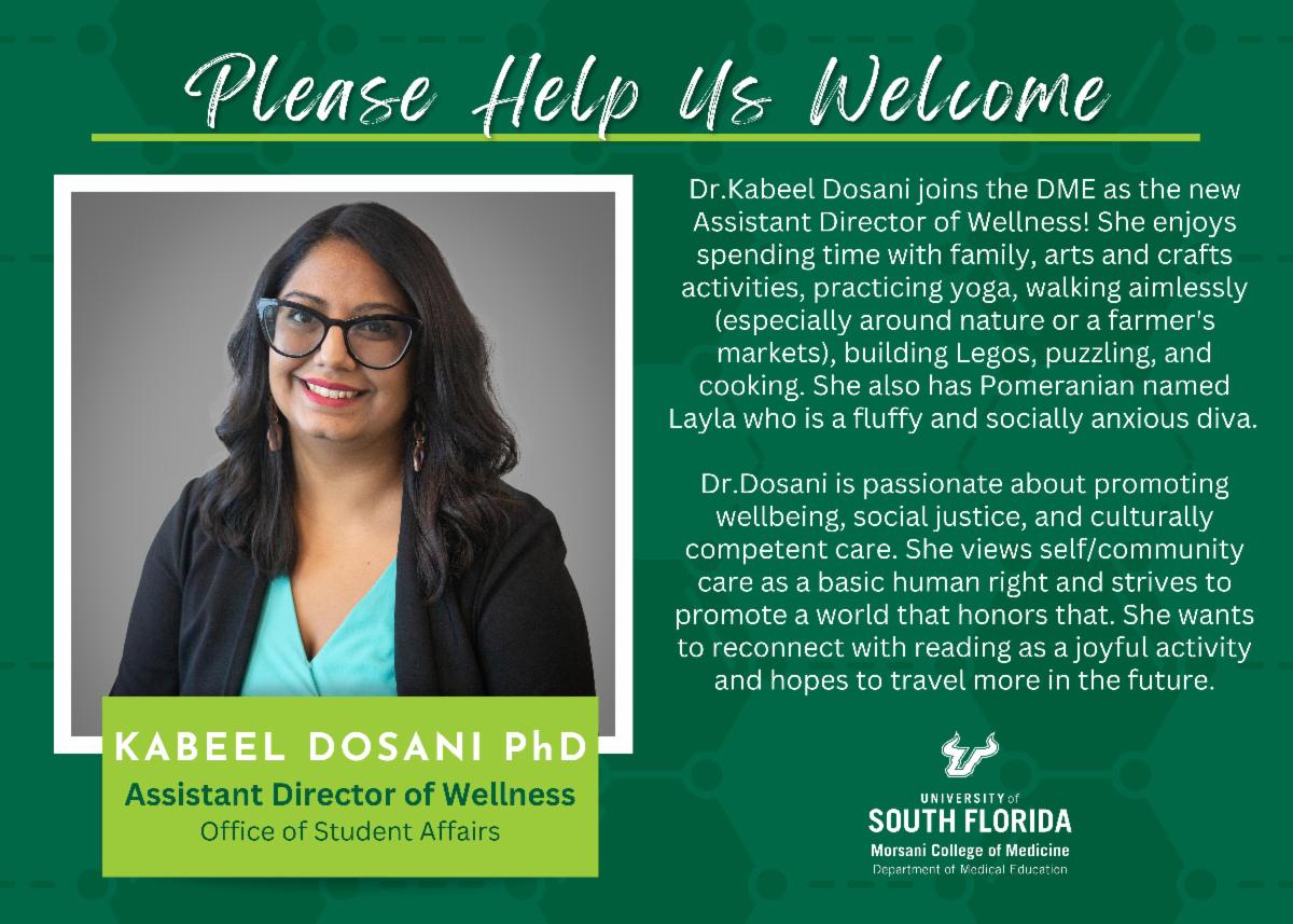 Dr. Dosani, Assistant Director of Wellness