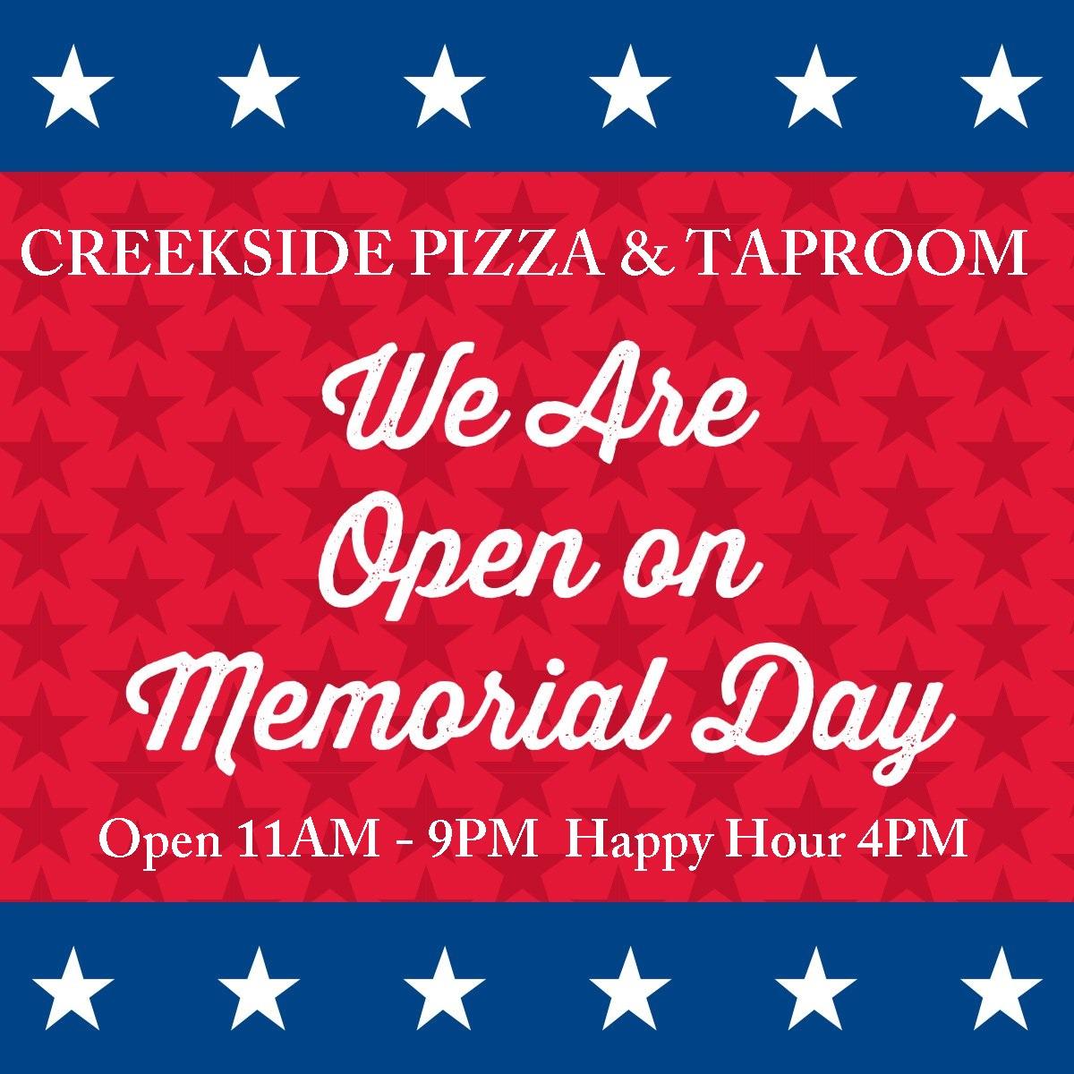 May 27: Memorial Day - Creekside Open 11AM -9PM