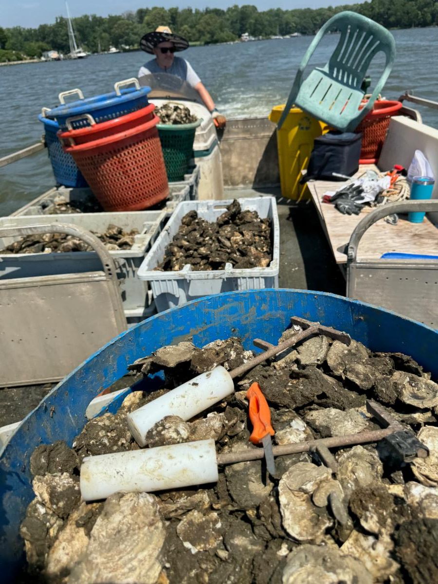 There's another benefit to the lack of rain - it boosts the salinity in the river. The oysters on our restoration reefs do best with salinity exceeding 10 parts per thousand (ppt). Salinity most recently measured 7.28 ppt at our Wade oyster restoration reef. Once it gets closer to 10 ppt we will be able to plant the oyster larvae and spat-on-shell mentioned in the opening section.