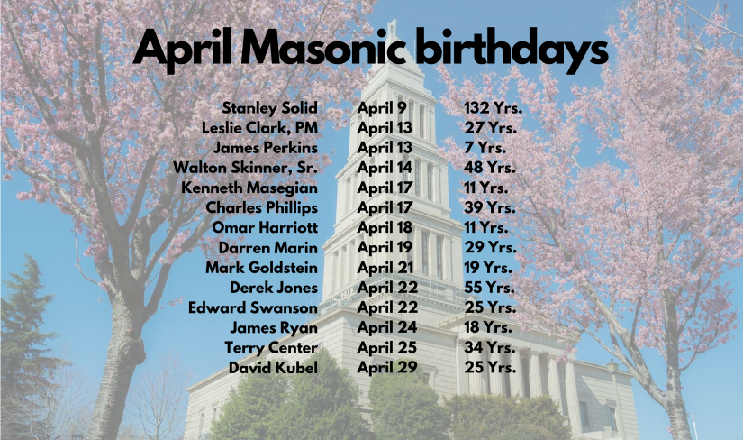 We have been fortunate to have had the help of Natoma Rainbow #90 at the Stated Meeting dinners but they are no longer able to be there all the time. We need you to be part of activities in our lodge. Please contact me or other officers to help during dinner preparation and clean up this next Thursday and for our breakfast on Saturday.