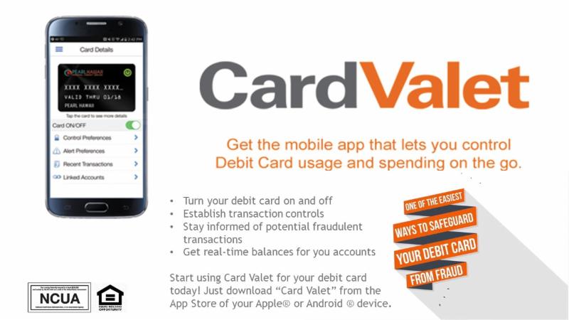- Equip yourself: Monitor your accounts regularly, respond to fraud alerts and report unauthorized transactions promptly. Use services like our FREE CardValet to turn your card usage one and off and monitor your purchases.