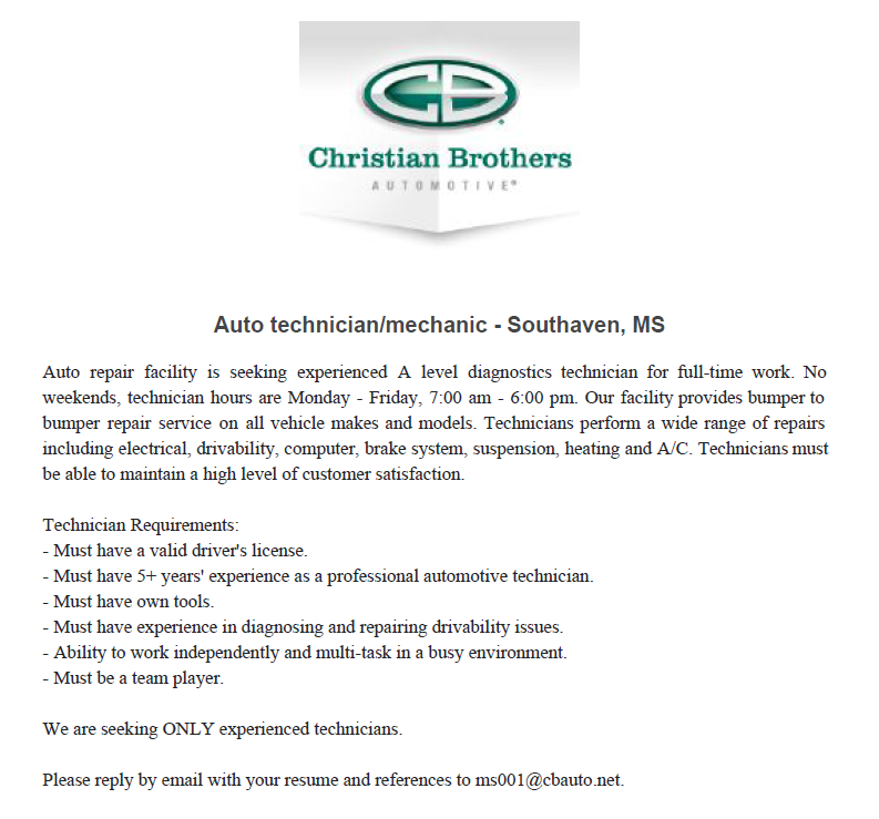 Apply online, in person, mail resume to 9070 Millbranch Rd, Southaven, MS 38671 or fax resume 662-470-6603