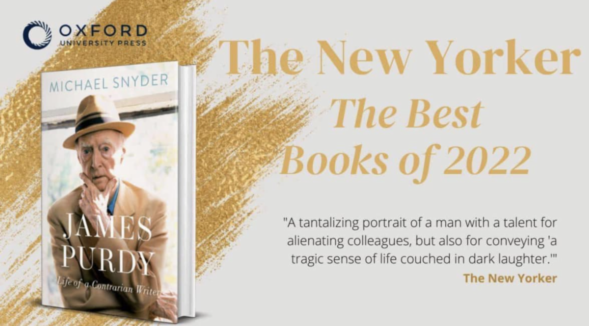 The college congratulates Michael Snyder, assistant teaching professor in English, whose recently published book James Purdy: Life of a Contrarian Writer (Oxford University Press) was longlisted for the Best Books of 2022 by The New Yorker. Art Fuse also listed it among their best of 2022. This is the first full-length biography of the gay American novelist, story writer, playwright and poet, who was acclaimed by many famous writers, including Langston Hughes, Tennessee Williams and Jonathan Franzen. Snyder spent over a decade plumbing the mysteries of Purdy's career and personal life, including interviews with those who knew him. Conveying the potency and influence of Purdy's fierce artistic integrity, vision and self-definition as a truth-teller, this groundbreaking literary biography recovers the life of a highly talented writer with a persistent cult following. The book has been reviewed by Jon Michaud of The New Yorker and Matthew Sadler for The Los Angeles Review of Books, among others. This is the third book by Snyder, who also wrote Our Osage Hills, which includes lost early work by John Joseph Mathews (Lehigh University Press, 2020, paperback, 2022) and John Joseph Mathews: Life of an Osage Writer (University of Oklahoma Press, 2017, paperback 2018), which was a finalist for the Oklahoma Book Award in nonfiction.