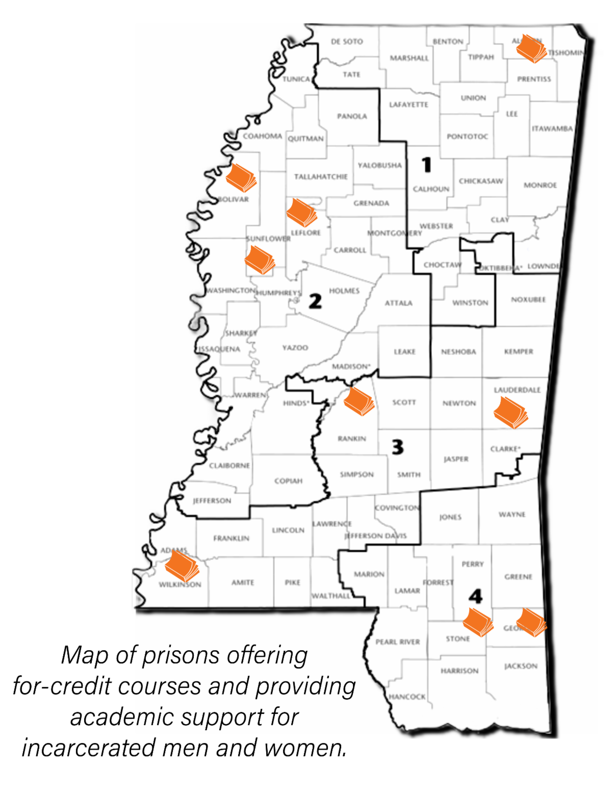With support from the Mississippi Humanities Council, six community colleges and Mississippi Valley State University (MVSU) are offering for-credit courses and providing academic support for incarcerated men and women.