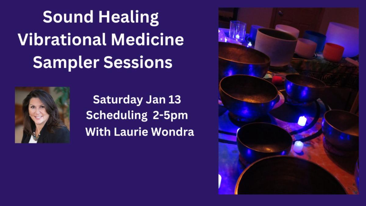 Jan. 13 to experience the healing and expansion of your energy field. Sessions include 30 minute private Sound Healing and Vibration Medicine and 10 minutes of Q&A where Laurie shares any messages or healing information. Sessions are done at Laurie's residence in her Chi Room. Register