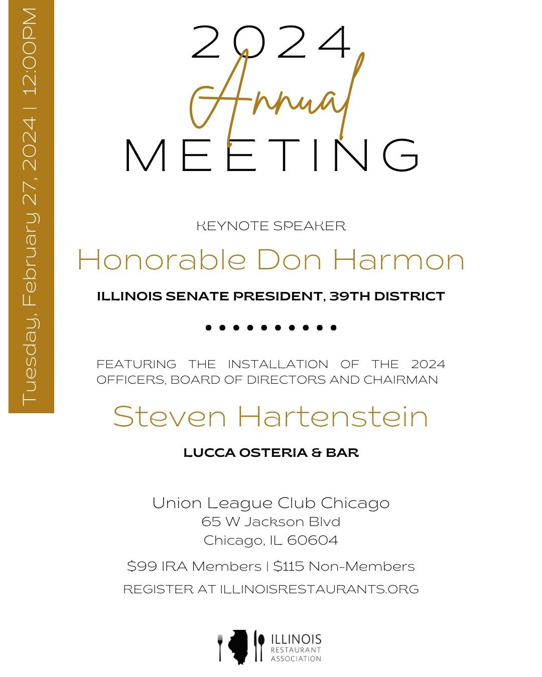 Join us on Tuesday, February 27 at the Union League Club of Chicago for the IRA's 2024 Annual Meeting & Luncheon. Registration begins at 11:30 a.m. This meeting will feature the installation of the 2024 Officers and Board of Directors.