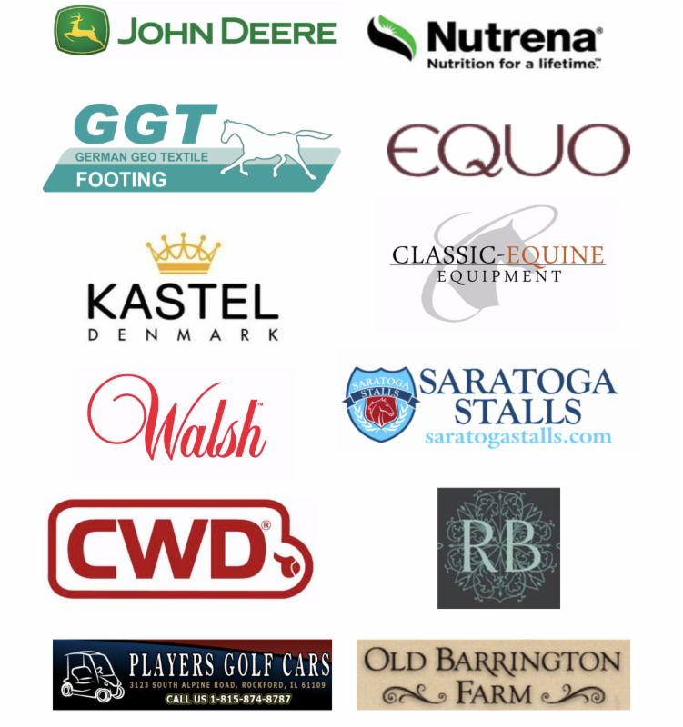 A special thanks to the generous sponsors of the 2016 Chicago Festival of the Horse Equifest Show Series: Nutrena, John Deere, Kastel Denmark, CWD, German GeoTextile (GGT) Footing, Equo US, Classic Equine, Walsh, Players Golf Cars, Riders Boutique, Old Barrington Farm and Saratoga Stalls.