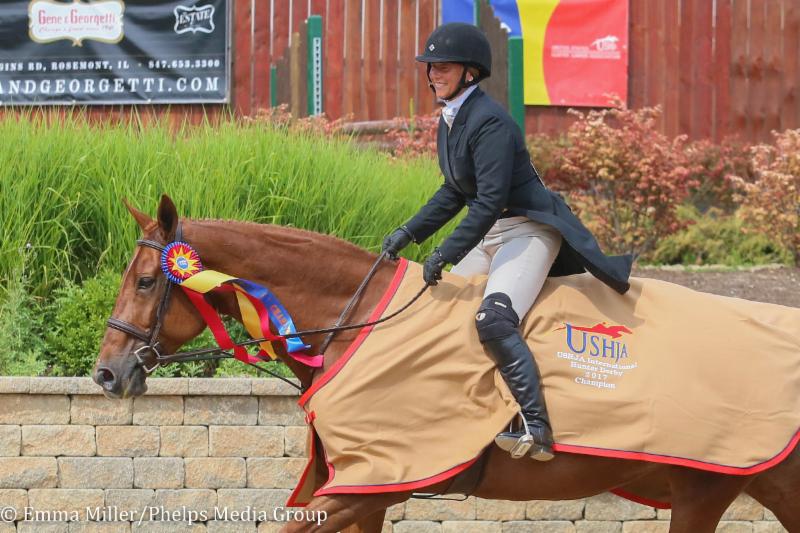 Wayne, Il. - Aug. 6, 2017 - A large audience gathered around the SmartPak Grand Prix Arena on Sunday morning to watch horse-and-rider combinations compete for the win in the $10,000 USHJA International Hunter Derby presented by CWD. After two rounds that impressed both panels of judges present for the derby, Jennifer Alfano and Miss Lucy, owned by Sharon O'Neill, finished in first place.
