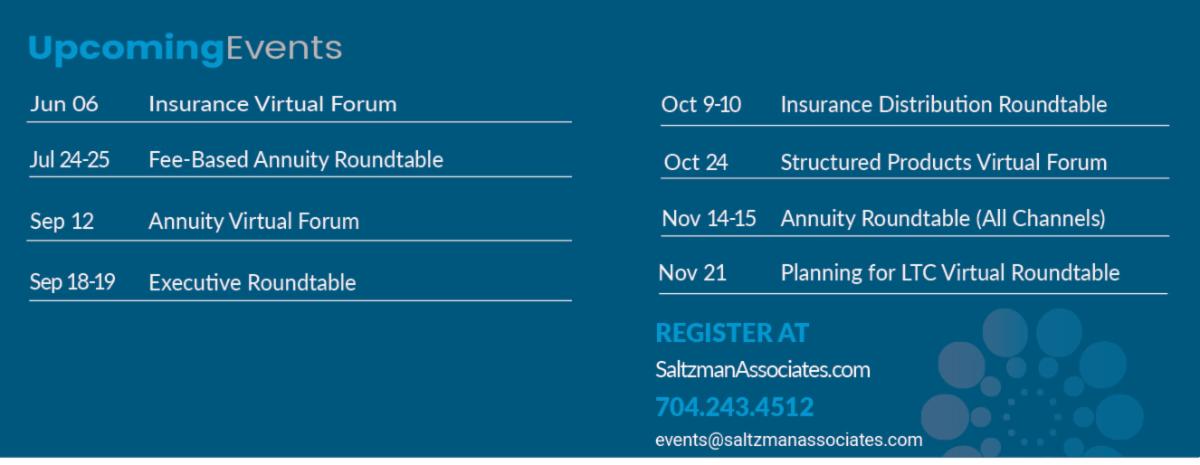 The Insurance Distribution Virtual Forum is a virtual meeting to cover current events and updates related to life and long-term care insurance distribution through securities-based advisors. This 1 ¼ hour session provides a meaningful touchpoint for those responsible for this line of business. Attendees include executives from banks, credit unions, wirehouses, national, regional, and independent broker-dealer firms, BGAs, insurance companies, and other industry experts. Register to attend!