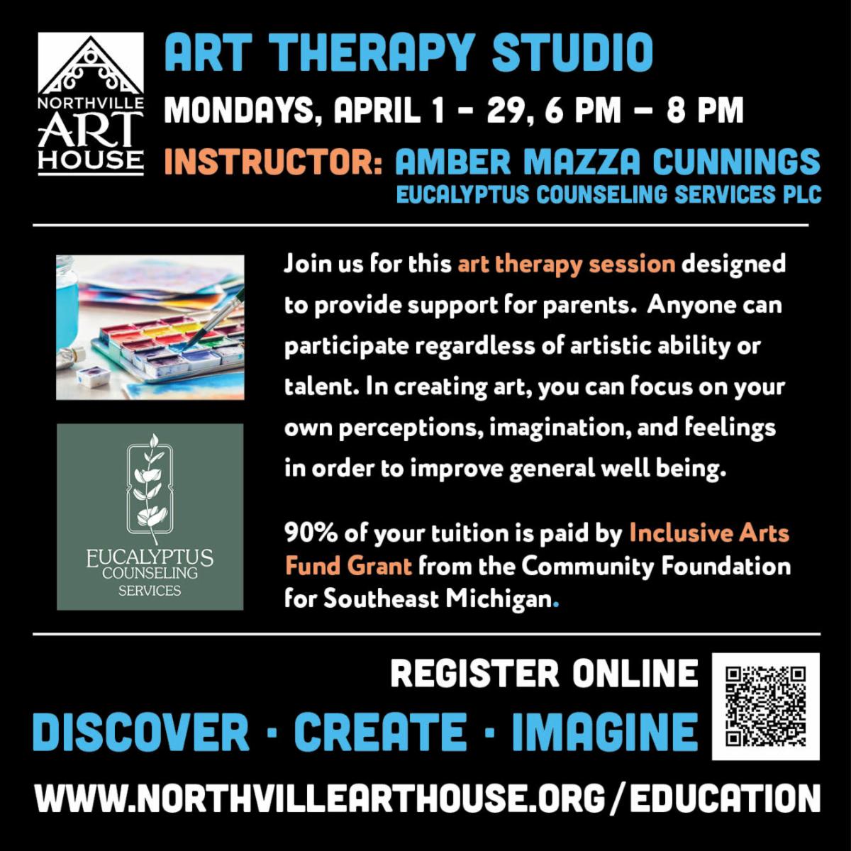 We are partnering with Amber Mazza Cunnings of Eucalyptus Counseling Services, based right here in Northville, to design a curriculum that will allow for self-exploration and expression, all with a goal of providing a creative outlet for healing. Our first session will begin on April 1, and is designed to provide a community of support for parents. Registration is now open. Thanks to the Inclusive Arts Fund grant, which covers 90% of the tuition for the class, the registration fee is only $20 for a 5-week session. Additional sessions will be announced throughout the year, so keep an eye on our website for more information.