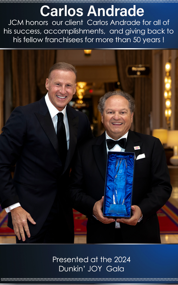 JCM honors our client Carlos Andrade for all of his success, accomplishments, and giving back to his fellow franchisees for more than 50 years!