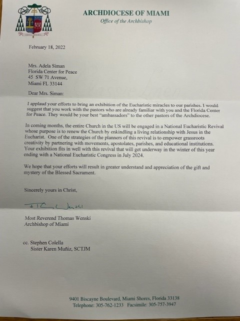 Publicado por el Florida Center for Peace. Ayuda a extender la devoción a Nuestro Señor Eucarístico. Difunde este boletín.