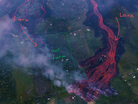 On May 18th, the farm of Paul and Suzanne was completely overrun by a 30 foot wall of fiery, molten lava from Mount Kilauea. The Hawaiians call the lava, Pele, the fire goddess.