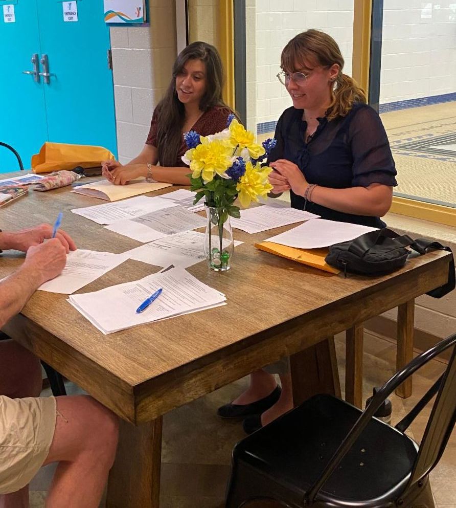 KENNETT SQUARE - Jordan Jackson (at right), LASP Intern, and Sandra Ortiz, LASP Paralegal and West Chester Office Manager, help a Chester County mobile home owner with the paperwork for a tax reassessment.