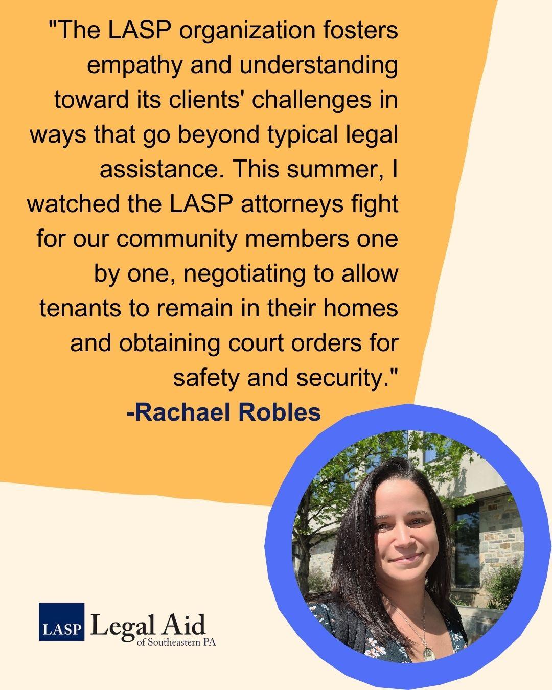 CHESTER City - Meet Rachael Robles, a rising 3L at Villanova Law School, currently serving as a Certified Legal Intern in our Chester City Office. Rachael began working with LASP in 2023 as an extern in the Community Engagement Unit in Norristown.