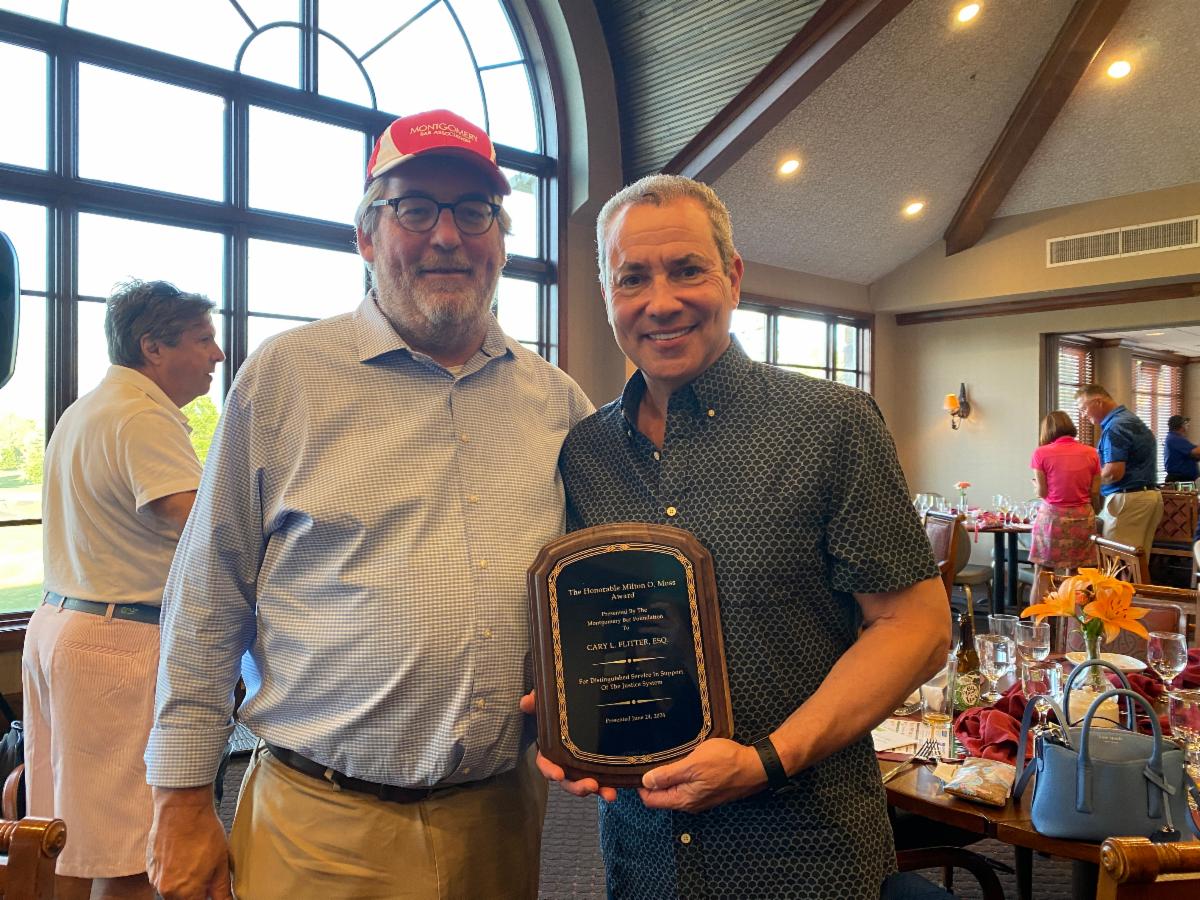At an evening cocktail reception, the MBF honored Cary Flitter of Flitter Milz and Norristown Police Officer Edward Butterworth. Flitter received the Hon. Milton O. Moss Award for distinguished support of the justice system. (He is pictured above with LASP Executive Director Shawn Boehringer.) Officer Butterworth received the Hon. Louis D. Stefan Law Enforcement Award.