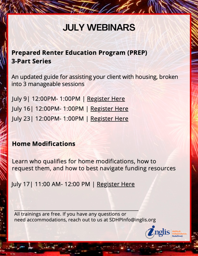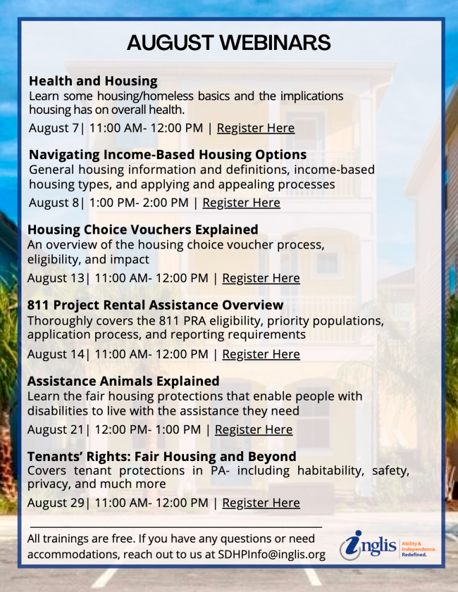 Self-Determination Housing of Pennsylvania (SDHP) offers a number of trainings that are free and open to the public. See what's coming up this summer! | |