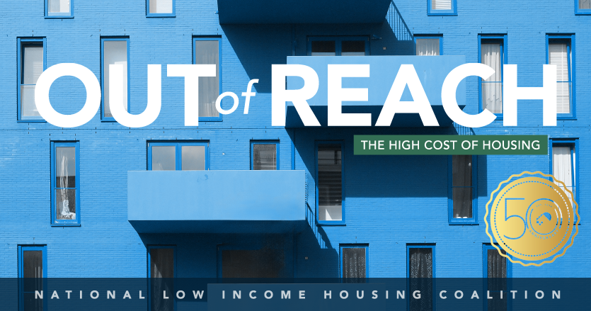 Released annually by the National Low Income Housing Coalition, Out of Reach illuminates the gulf between wages and what people need to earn to afford their rents. The report’s “Housing Wage” is an estimate of the hourly wage full-time workers must earn to afford a rental home at fair market rent without spending more than 30% of their incomes.