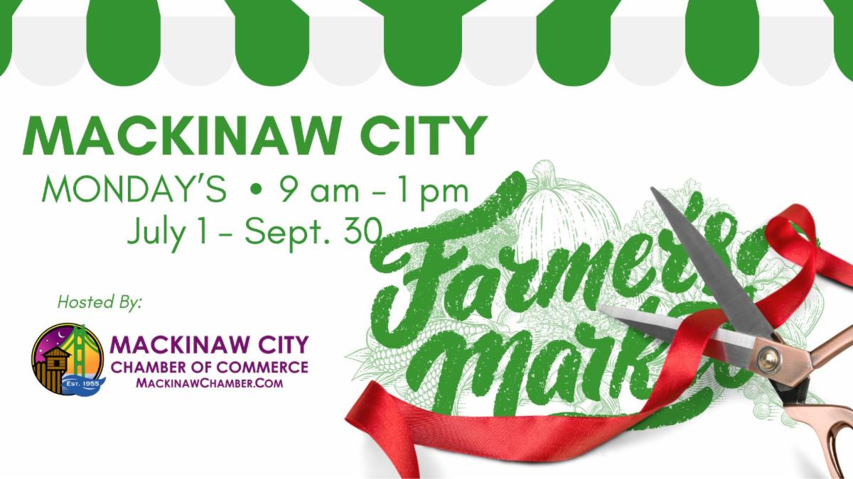 We are thrilled to announce the grand opening of the Mackinaw City Farmers Market today, Monday, July 1st! Join us at the beautiful Conkling Heritage Park waterfront location at 9:00 am to celebrate local growers and artisans. We will be cutting the ribbon at 9:15 am and look forward to welcoming everyone on our opening day!