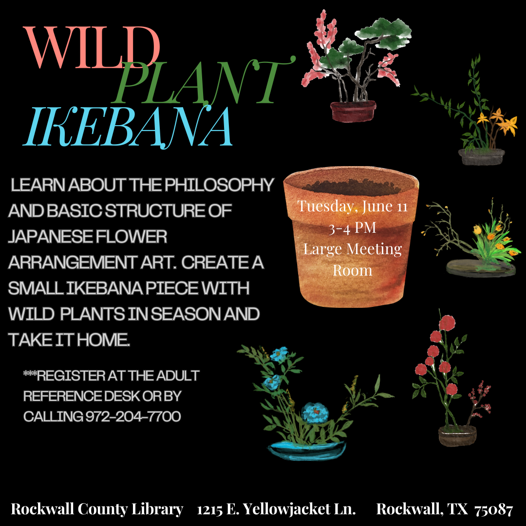 Join us Tuesday, June 11th from 3-4 PM to learn about the philosophy and basic structure of Japanese flower arrangement art. Create a small Ikebana piece with wild plants in season and take it home. Space is limited, register at the Adult Reference Desk or by calling 972-204-7770. Program will take place in the Large Meeting Room. | Hola! Bring the whole family for stories, songs, and laughter—for an immersive Spanish Storytime series—on Tuesdays, June 11th, June 18th, and June 25th. Wear your comfy jammies and join us from 6:30-7 PM in the Storytime Room. Juice and cookies will be provided after the stories for a great ending to the day. | |