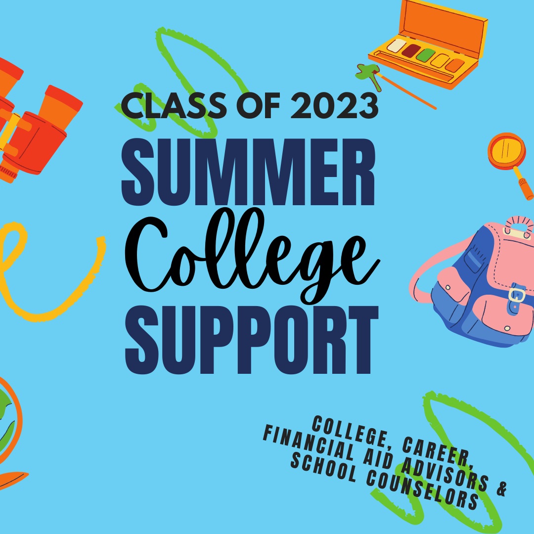 College, Career and Financial Aid Advisors and School Counselors will be available to support Class of 2023 students from June 5 - July 28.