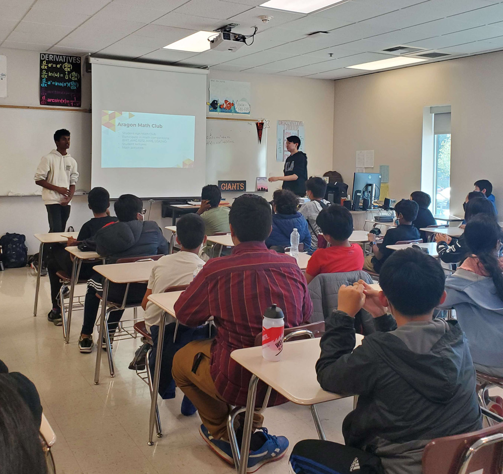 The club is led by President David Sai, Vice President Akilan Paramasivam and Treasurer Anish Dura with Math Department Chair and Teacher Adam Jacobs serving as the club advisor.