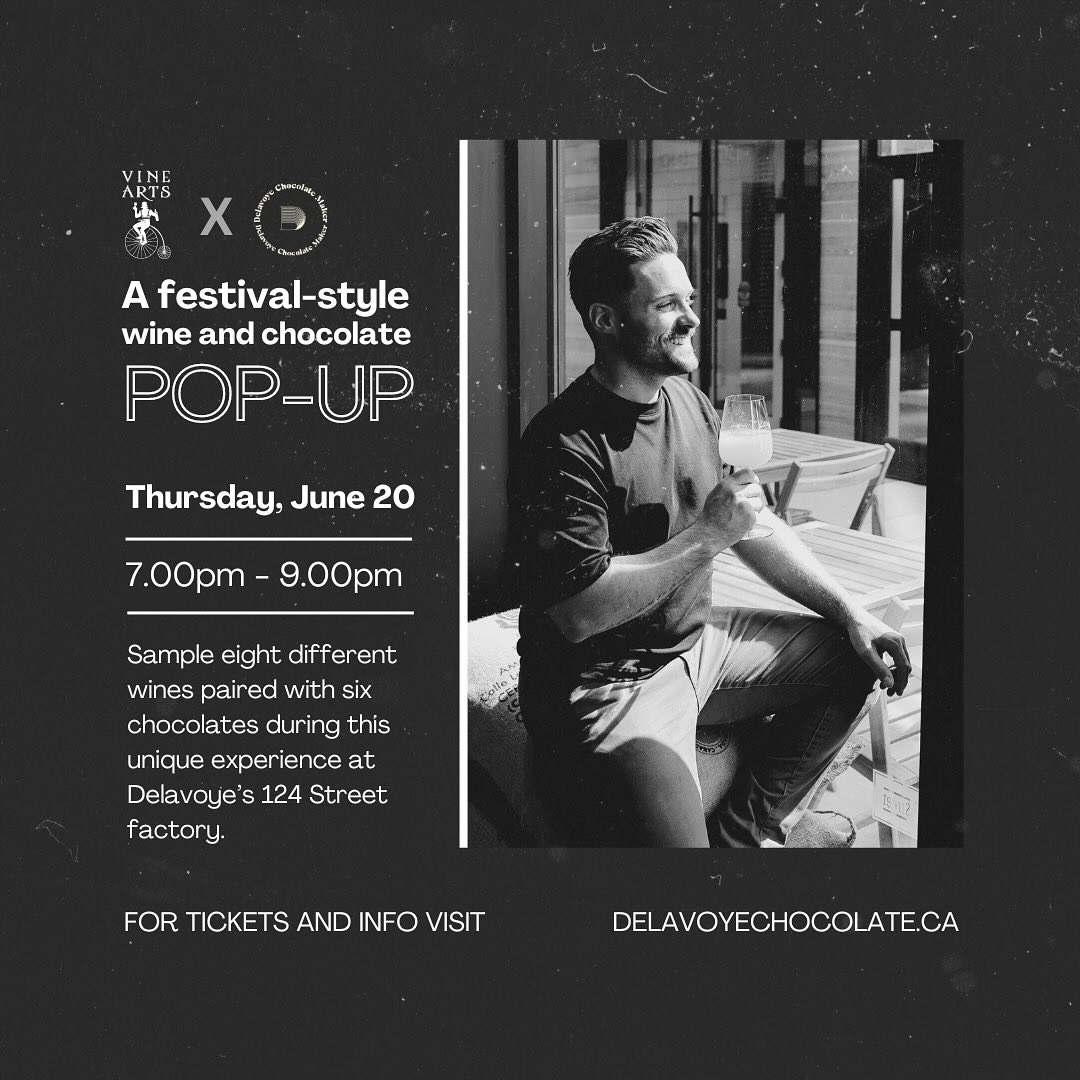 Join Vine Arts Wine & Spirits and Delavoye Chocolate Maker for a collaborative festival-style pop-up at Delavoye's 124 Street factory on Thursday, June 20th!