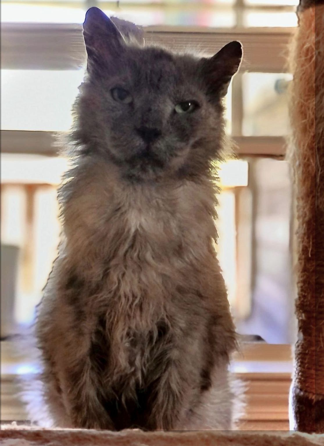 I don’t really know how I came to be living on the streets, but somehow, I did. The vet says I was living there a long time because I was underweight and matted, all my teeth were broken, and I’m FeLV and FIV positive. I’m told those are viruses I likely got from fighting with other cats. I really tried to be nice to other cats, but I got picked on. The streets are a hard place to live, especially as a distinguished, senior gentleman. Oh yeah, the vet also said I had fleas. I really hate those things!