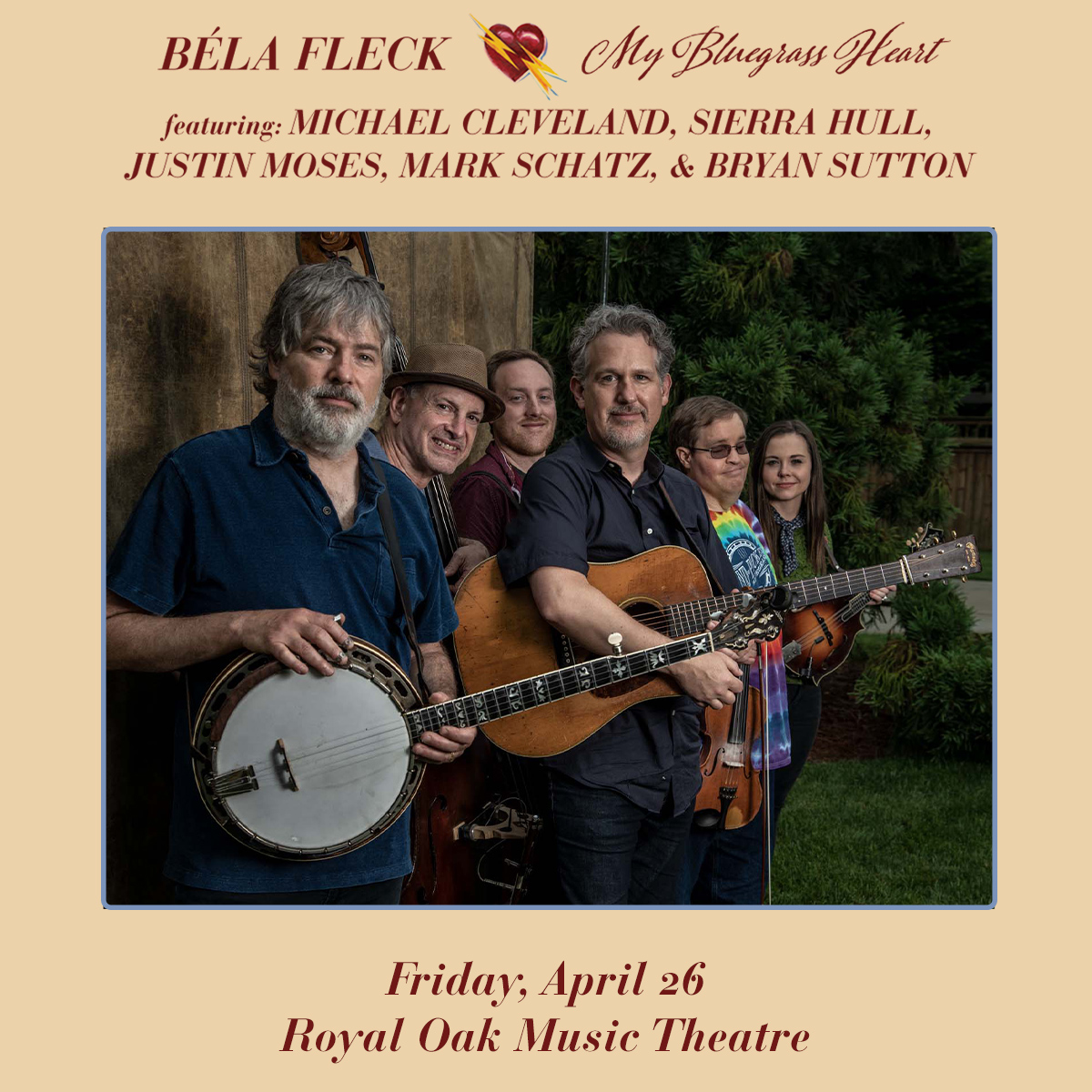 Over the last four decades, Béla Fleck has made a point of boldly going where no banjo player has gone before, a musical journey that has earned him 15 Grammys in nine different fields, including Country, Pop, Jazz, Instrumental, Classical and World Music. But his roots are in bluegrass, and that’s where he returns with his first bluegrass tour in 24 years, My Bluegrass Heart.