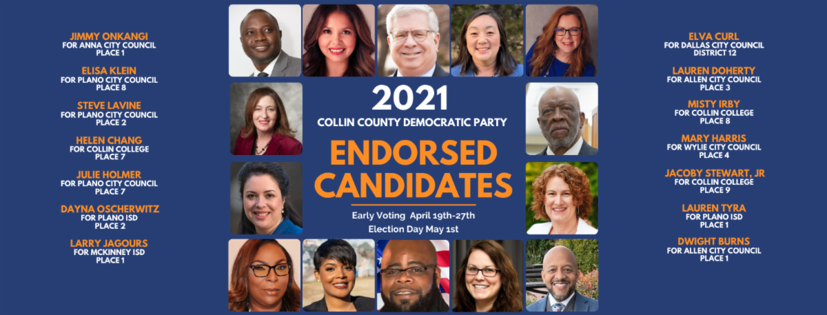 For additional information about the Municipal Elections and our endorsed and recommended candidates, visit our Collin County Democratic Party website.