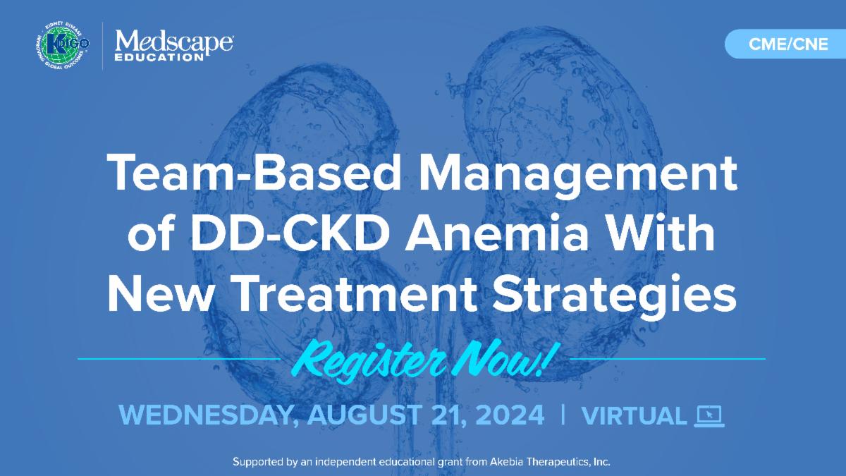 Join us for a symposium on dialysis-dependent (DD) chronic kidney disease (CKD) anemia designed to encourage the exchange of ideas between leaders in the field and attendees. This webinar, led by Kirsten Johansen, MD (United) States), addresses clinical data for hypoxia-inducible factor prolyl-hydroxylase inhibitors (HIF PHIs) for the treatment of DD-CKD anemia, the role of HIF PHIs in managing DD-CKD anemia, and the importance of a team-based approach to patient treatment and monitoring. Register.