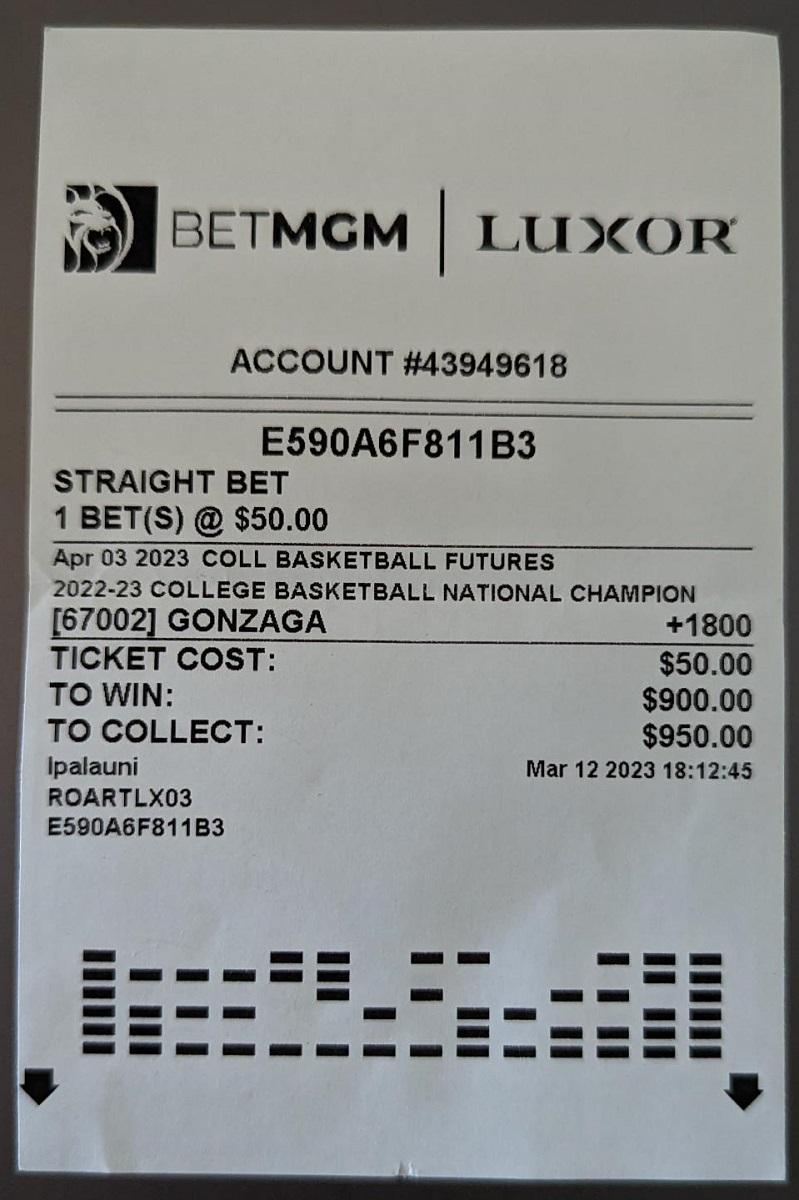 Last week, I mention that I bet $50 that Gonzaga would win everything in the NCAA men's basketball tournament. Sadly, the Zags let me down big-time. Yes, they got into the "Elite Eight," but got their butts kicked by the University of Connecticut.