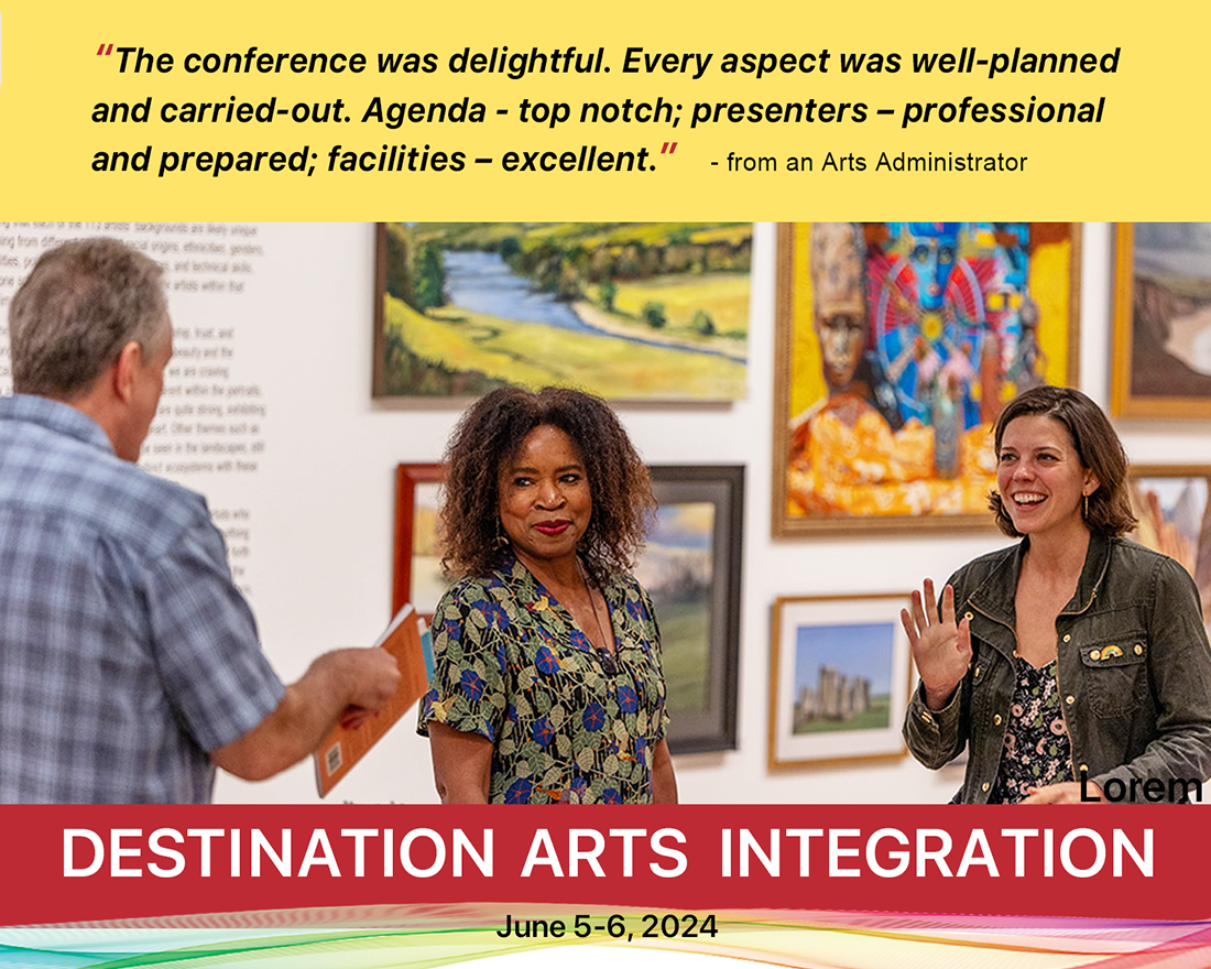 JOIN US for two days of excellent arts integration professional development! The cross-discipline, intentional mix of workshops and stellar presenters will provide inspiration, tools, connections, community and the support that elevates classroom learning and teaching. Something for everyone, learn more and register HERE.