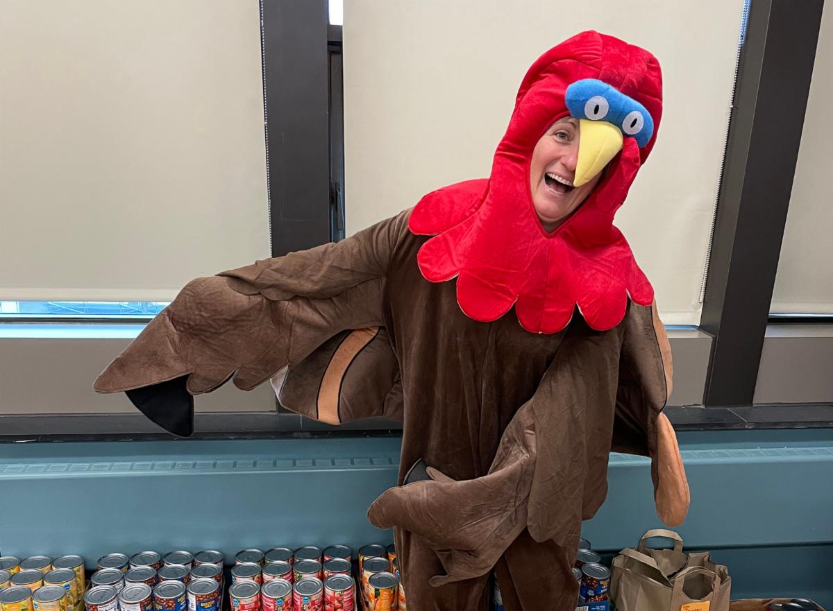 The Kenmore East High School Student Congress sponsored the annual ‘Gobblin' Up Hunger’ campaign during the month of November which was once again a tremendous success. Through this effort, they were able to collect an astounding 12,000 cans of food for Kenmore East families and the school food pantry. Students donate items each year in the name of a particular member of the staff and the staff member with the most items donated is named Kenmore East’s “Biggest Turkey.” This year's Biggest Turkey was Spanish language teacher Tina Cavese, who had more than 6,000 cans donated in her honor, earning her the opportunity to wear a turkey costume the day before the holiday break.