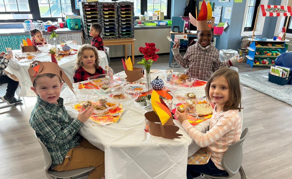 Students in Hoover Elementary School teacher Samantha Page's classroom recently enjoyed a very special "Friendsgiving" celebration, which has now become an annual tradition in Room 118. The children wrote and shared cards expressing thanks to their friends and classmates then shared a lovely meal together. Students made their own placemats, turkey hats, muffins, and even butter. They also helped decorate the tables and used exceptional manners while enjoying their meal. It was a great way to show their gratitude for their friends.