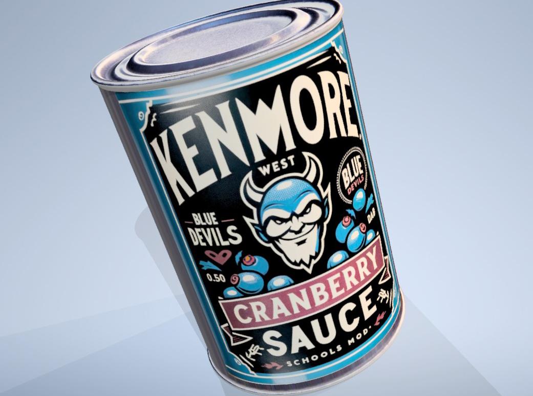 Students in Kenmore West High School technology teacher Christopher Derrick's Design and Drawing for Production class were given a unique Thanksgiving assignment: creating their own 3D model of Kenmore West-themed cranberry sauce cans using Autodesk Inventor. Once they created their lifelike model of an aluminum can, they used ChatGPT-4 to generate images until they decided on five different can labels. During this process, the class discussed the limitations of ChatGPT-4 and how being able to incorporate AI technology into engineering and workflow is proving to be a tremendous benefit. Students who completed the assignment were given 3D-printed Blue Devil keychains that they printed on the Technology Department's new Prusa Mk4 3D FDM printers.