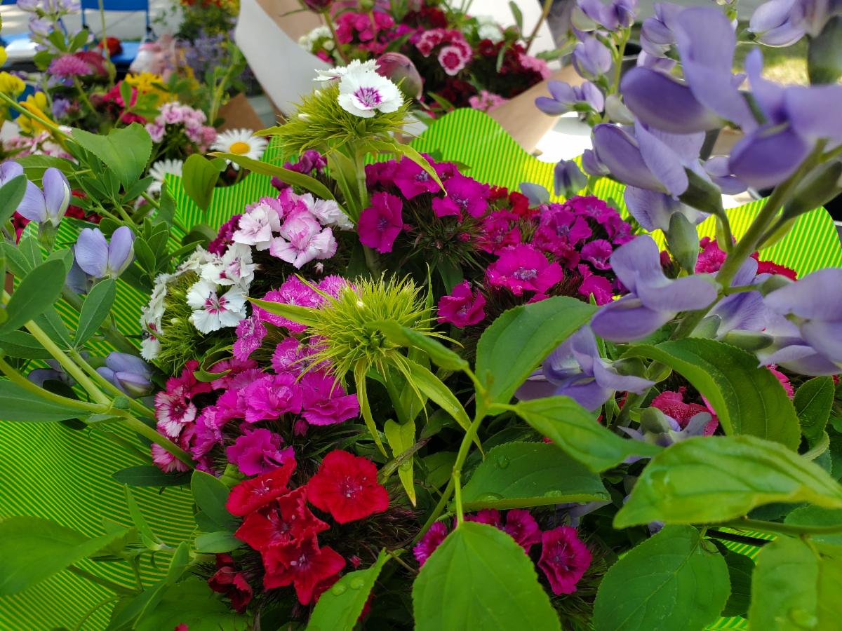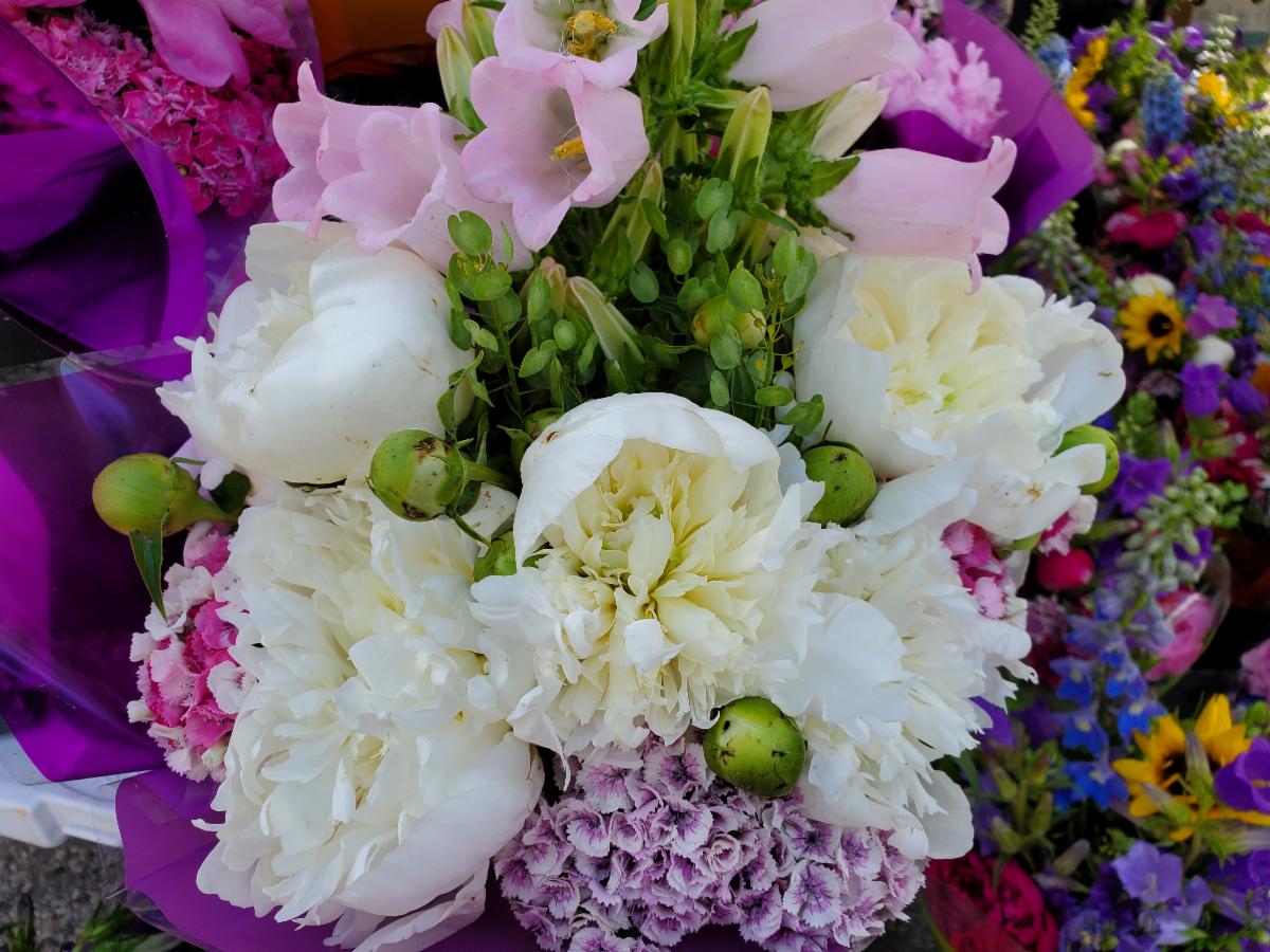 Flower bouquets include irises, peonies and Sweet William. Allium and Purple Smoke Bush with Diablo nine bark bouquets will also be available.