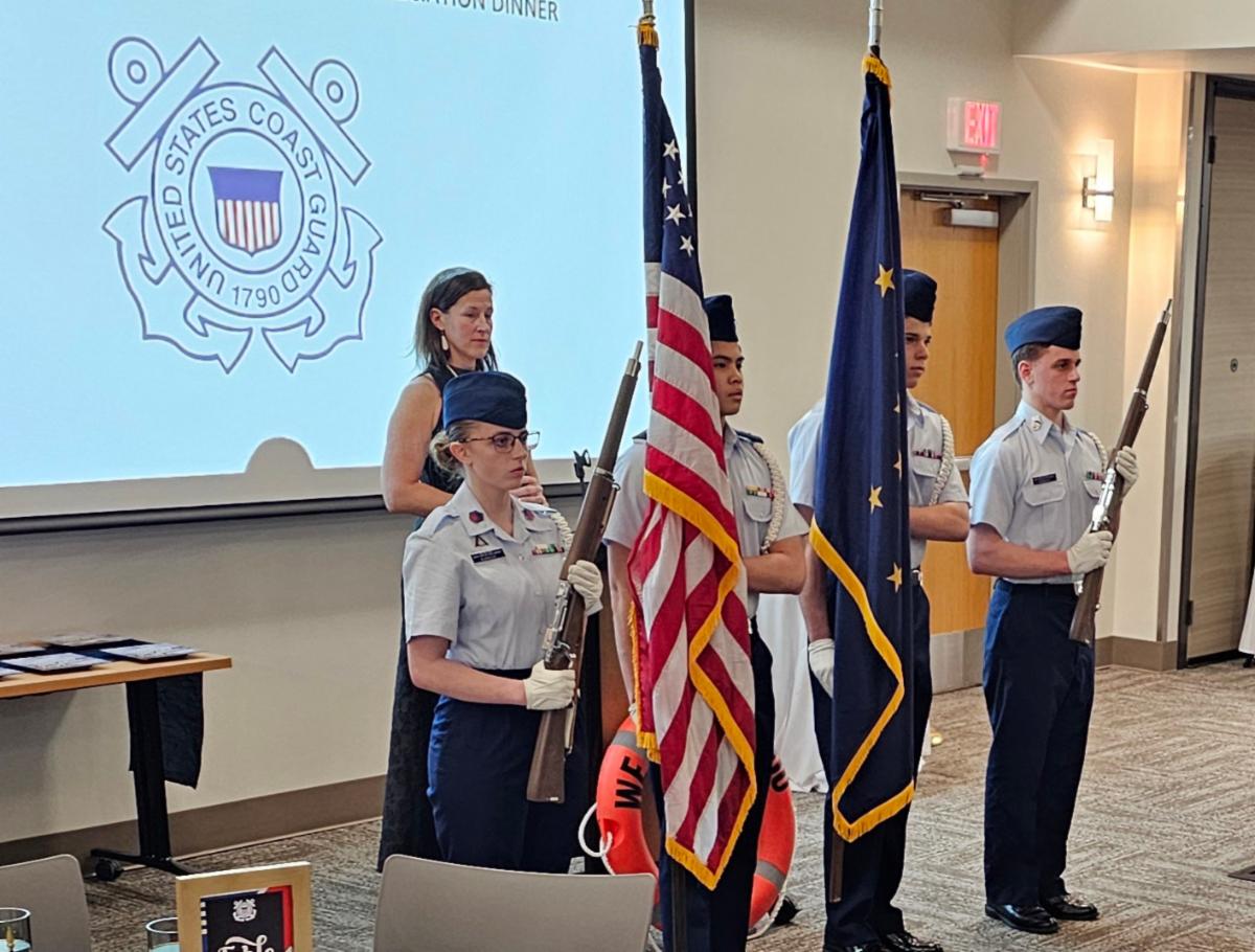 Representative Louise Stutes and Senator Gary Stevens were able to attend in person to share a short speech and presented Proclamations to the Coast Guard. Our hosts for the evening were Chamber President Mary Beth Loewen along with Past President Jeff Sanford and Secretary/Treasurer Sara Fraser, Captain Jeremy Hall CO Base Kodiak & Captain Tim Williams CO Air Station Kodiak.