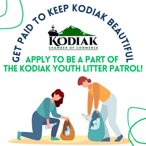 Please share that the Kodiak Chamber of Commerce is hiring four motivated students aged 14-17 to join the Kodiak Youth Litter Patrol team. It's a great way to get a resume started, build refrences, and learn some job responsibility.