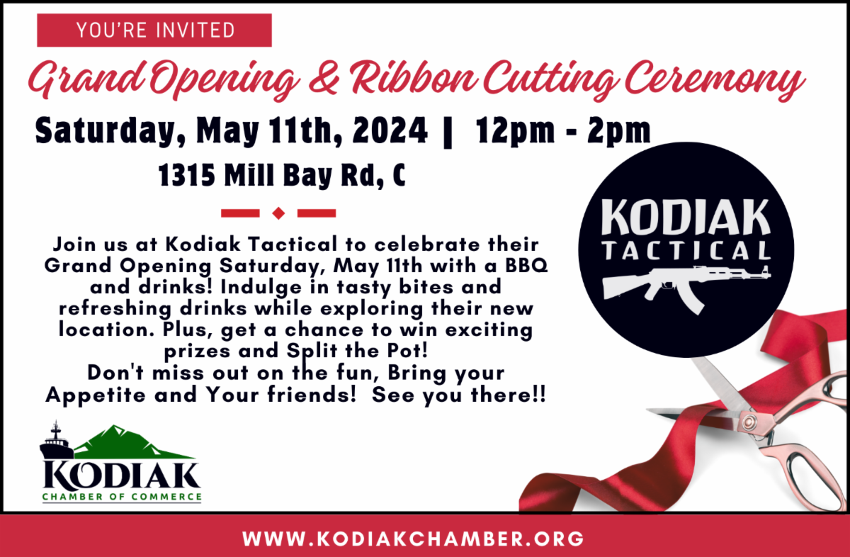This Saturday be sure to join us at the Grand Opening & Ribbon Cutting Ceremony for Kodiak Tactical at 1315 Mill Bay Road Ste. C from 12pm to 2pm.
