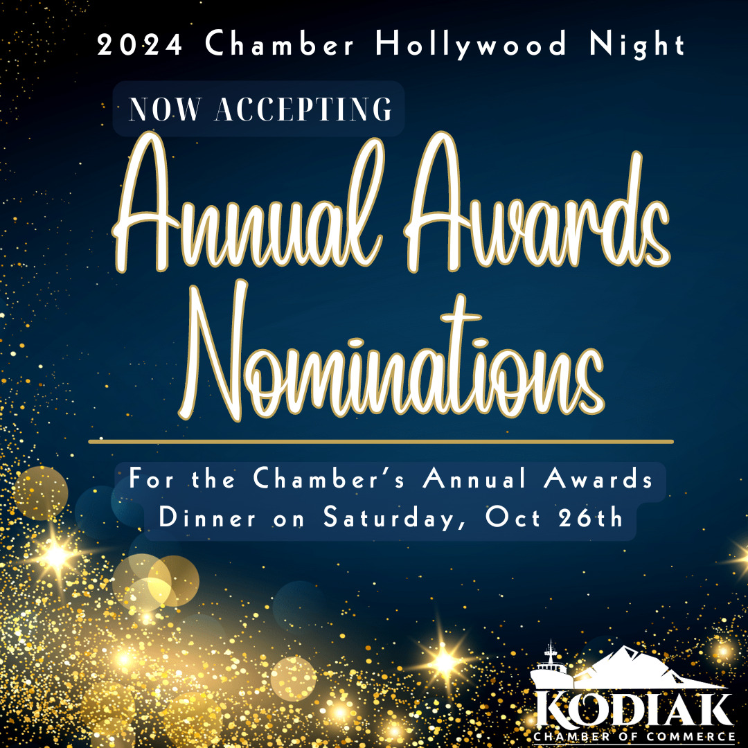 I'm excited to announce our upcoming Chamber Awards Dinner, a celebration of the outstanding contributions that make our business community thrive. I encourage each of you to take a moment to nominate deserving businesses and individuals for these prestigious awards. Your participation ensures we recognize the best of Kodiak's entrepreneurial spirit. Click Here