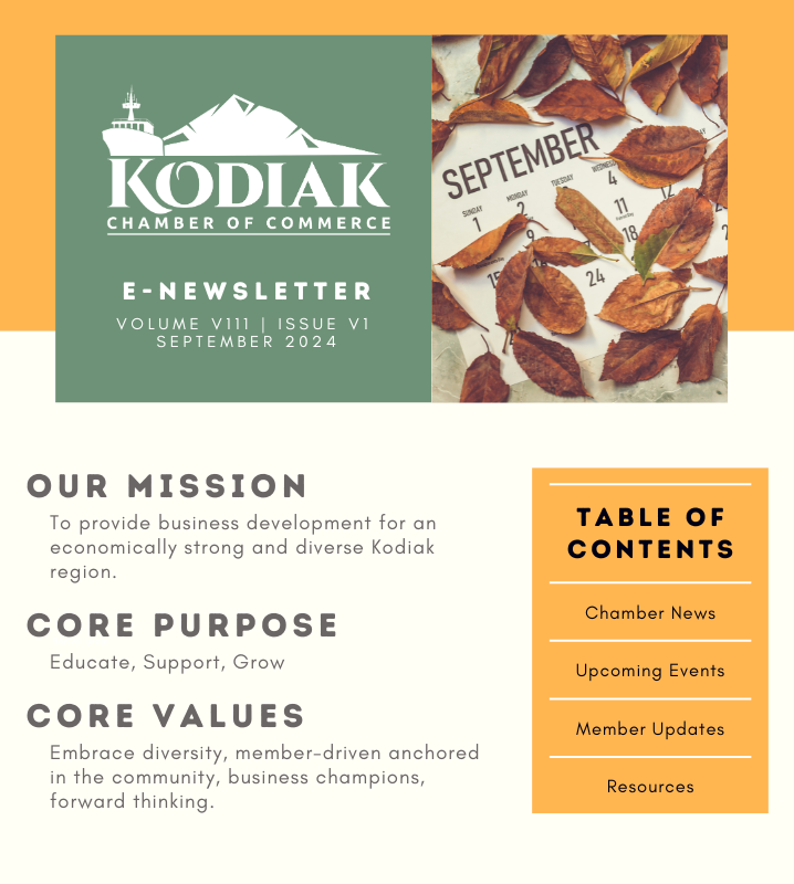 Lastly, I want to remind you of the importance of renewing your Chamber membership. Your continued support empowers us to advocate for your interests and provide resources tailored to your needs, that can help all our Kodiak businesses flourish.