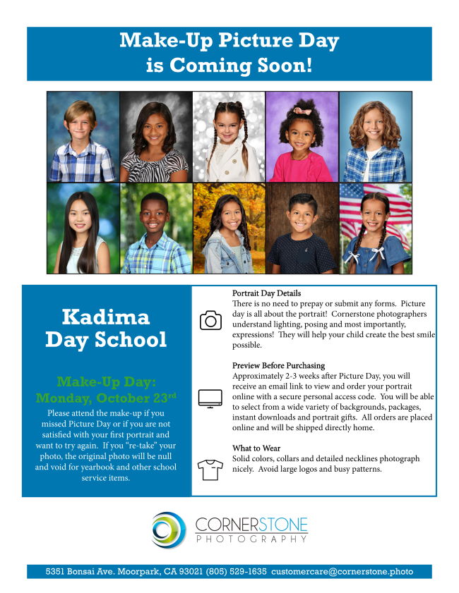 A makeup opportunity is scheduled for Monday, October 23 for those who missed picture day or for those who are not satisfied with their portrait and want to try again.
