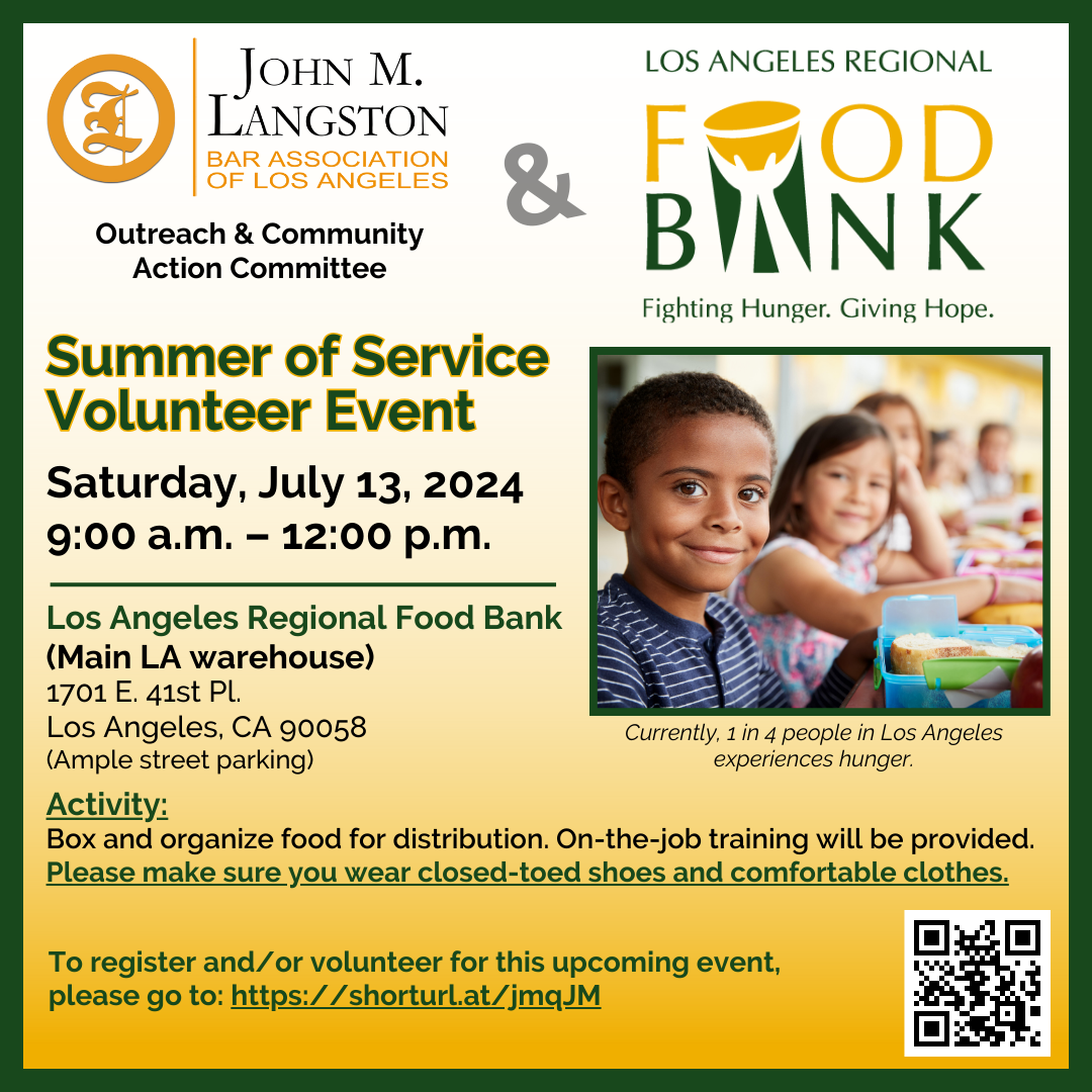 To Volunteer: Email your name and contact information to Neesa Sethi of LAFLA at nsethi@lafla.org and say you are volunteering on behalf of the John M. Langston Bar Association. Also fill out the new LAFLA clinic volunteer form: http://www.bit.ly/laflaclinics.