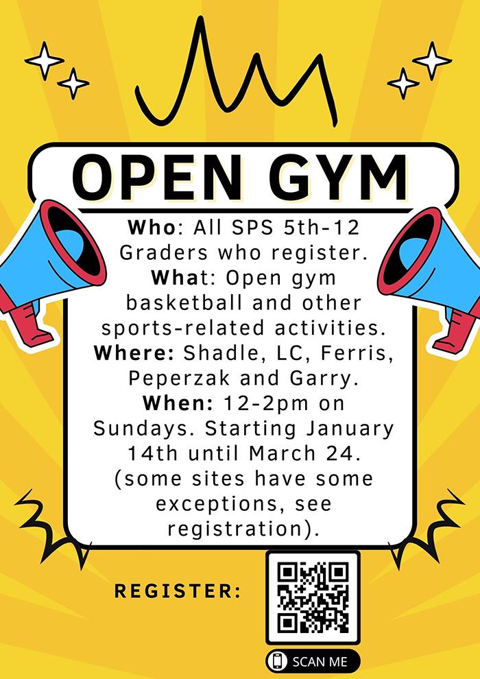 WHAT: Open gym basketball and other sports-related activities